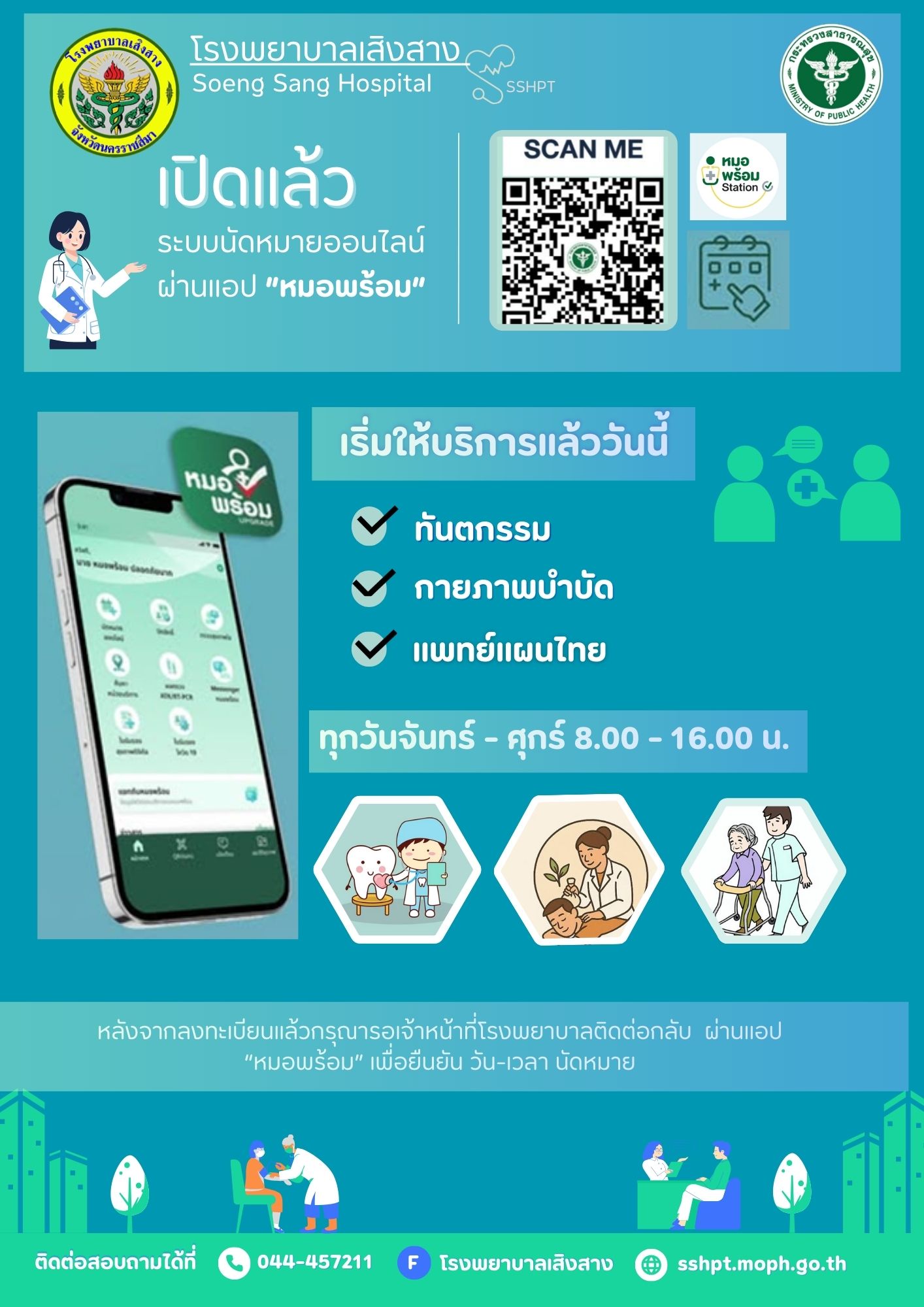 นพ.กฤษณ์ แก้วน้ำใส ผู้อำนวยการโรงพยาบาลเสิงสาง 044 457211-5 ต่อ 0